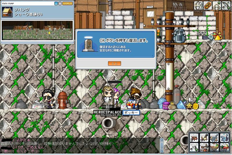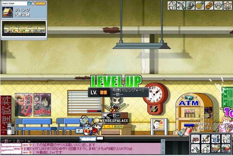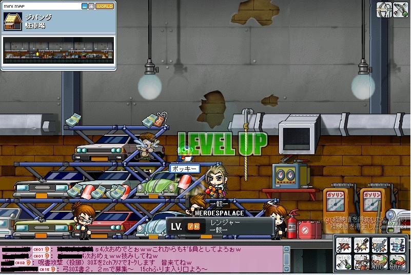 昨日(25日 は日曜でサクチケがフルに使えるためかなり頑張りました。最初は提灯を狩ってたんですけど何かギルメンがカッパに誘ってくれたので行く事に・・・・・・。ほぅほぅ、結構うまいねwLV差あるからどうかなって思ったけどなかなかいいじゃんって事でカリカリしてると・・・・・
